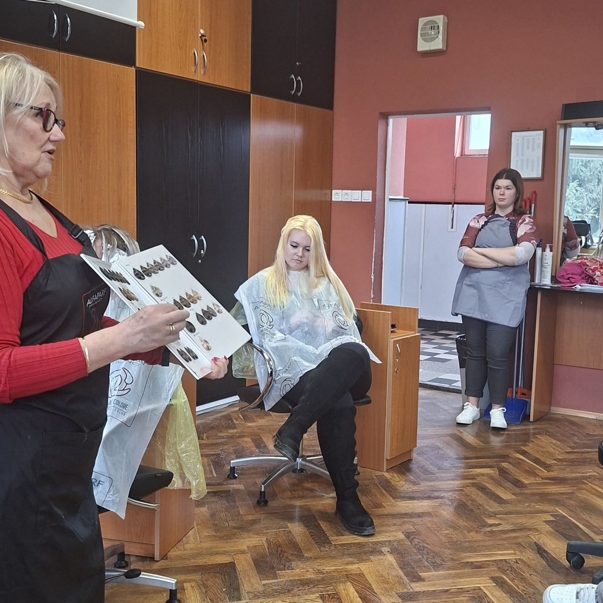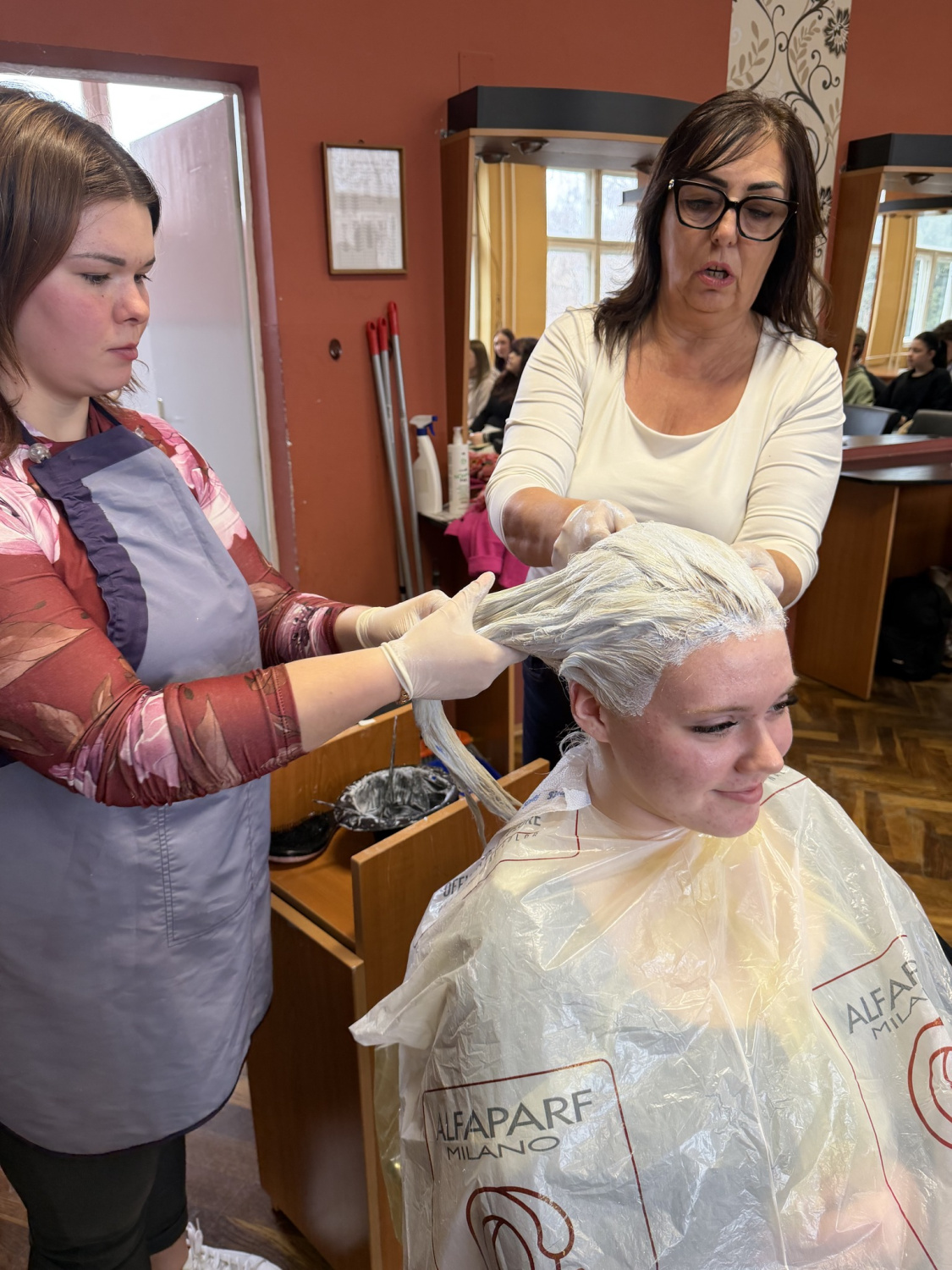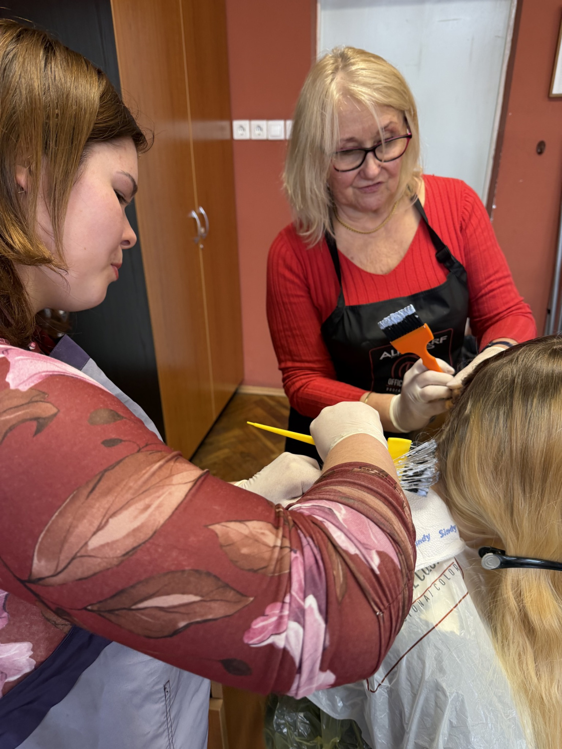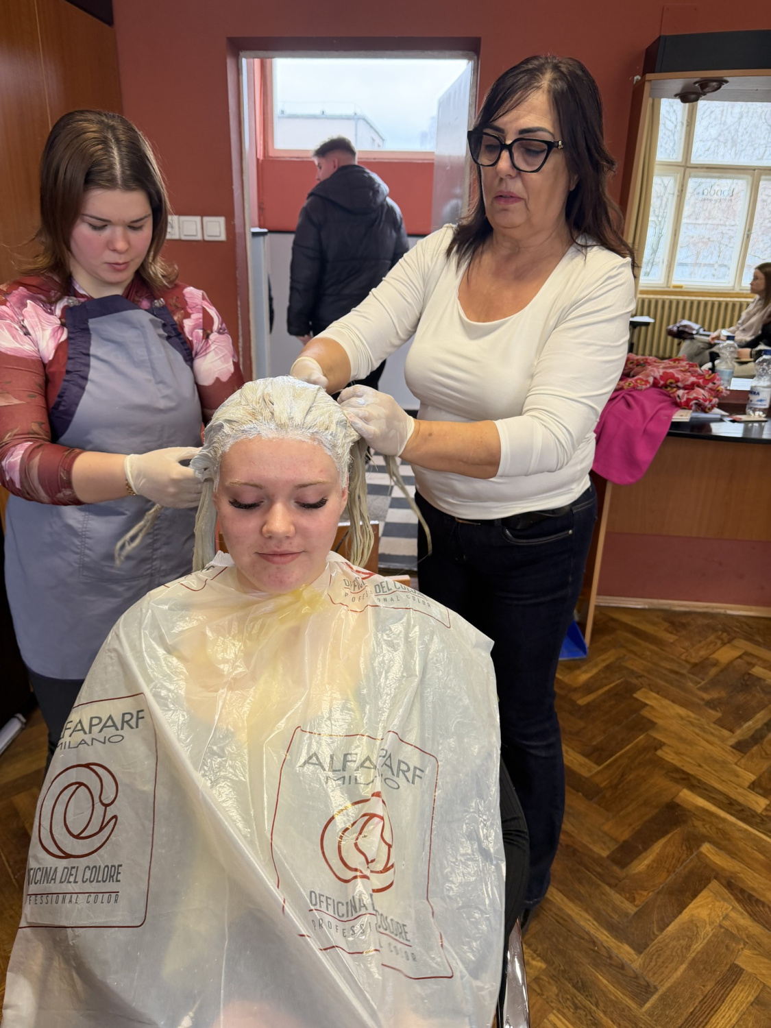 Tanulóink nem csupán megfigyelőként voltak jelen: aktívan bekapcsolódtak a munkafolyamatokba, kipróbálhatták a tanult technikákat, kérdezhettek, és közvetlen szakmai visszajelzést kaptak. Ez a tapasztalati tanulás kiemelten fontos a jövő fodrászai számára, hiszen így valódi szalonmunkához közeli környezetben fejlődhetnek.