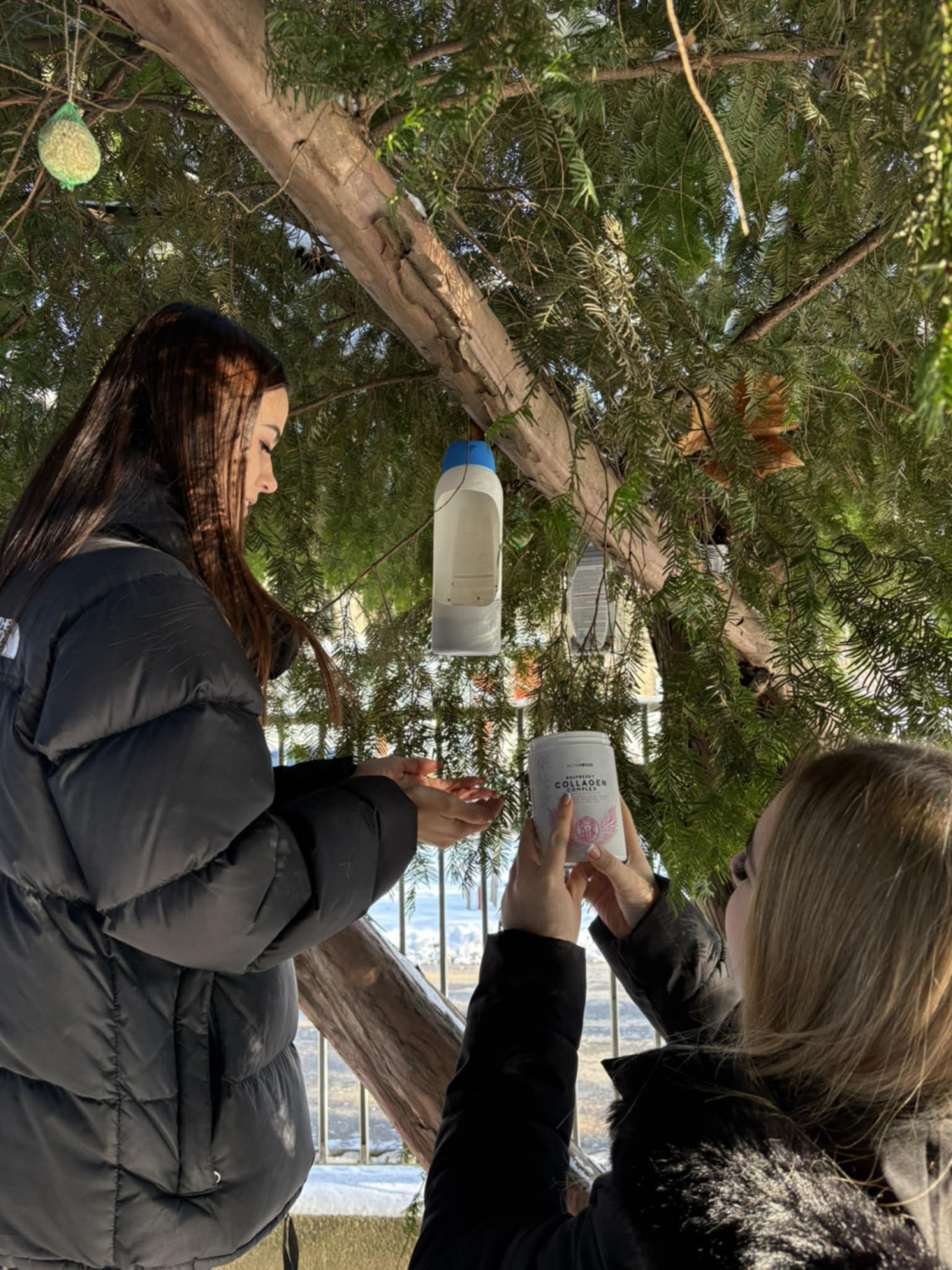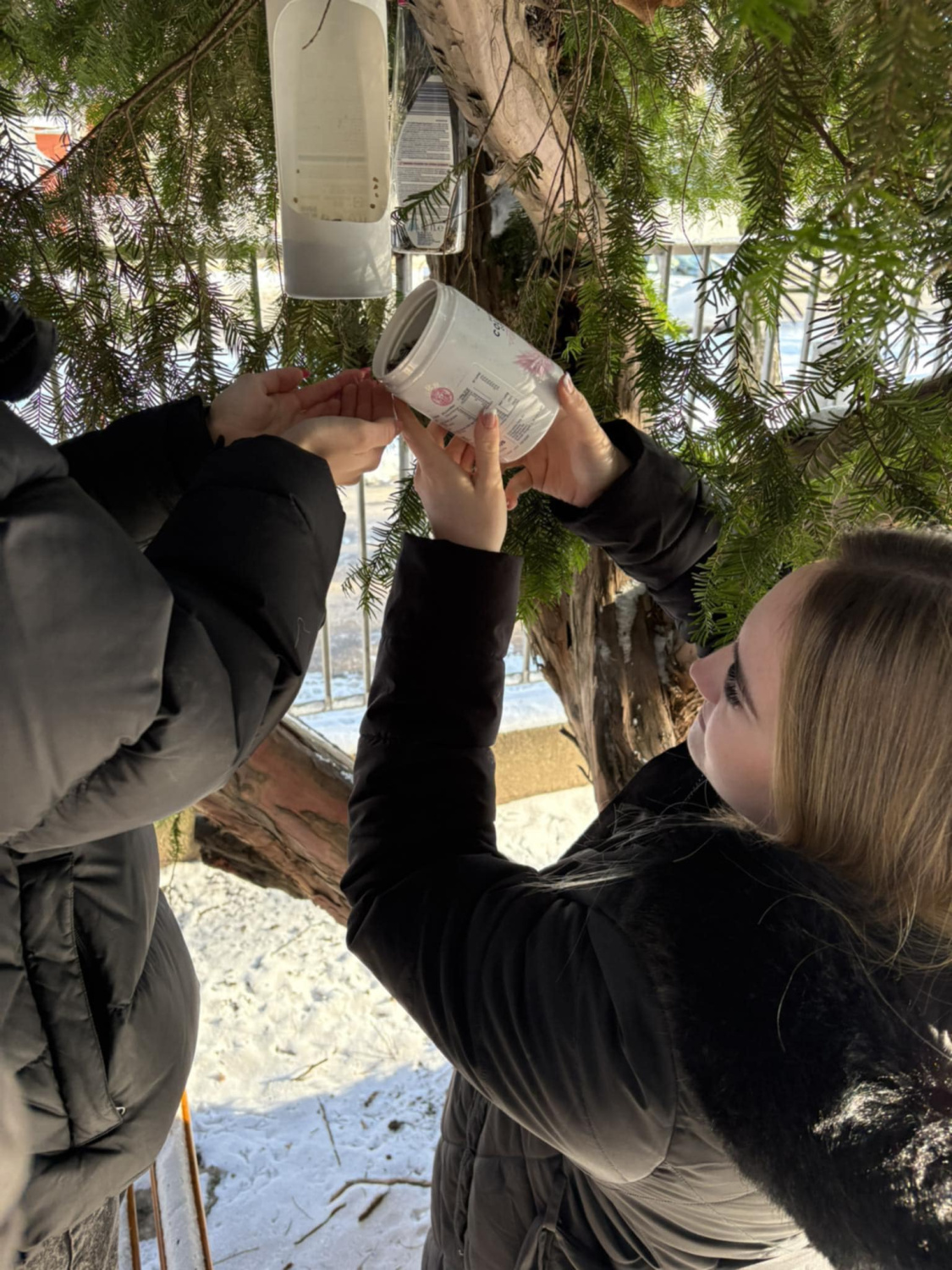 Felbuzdulva a DÖK felhívásán a 12.B és 13.B osztályos fodrász tanulók Illés-Kabai Andrea tanárnő koordinálásával örökbe fogadták az iskola madarait, és vállalták, hogy rendszeresen feltöltik a kihelyezett madáretetőket.