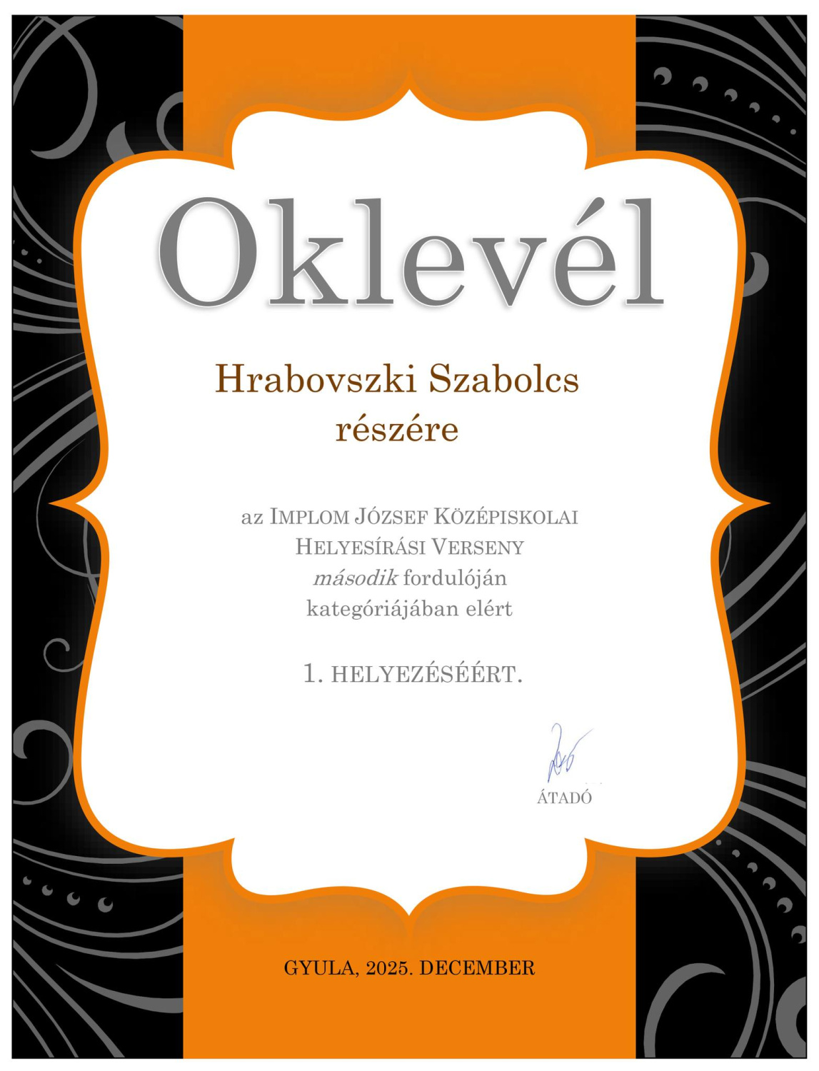 Gratulálunk Hrabovszki Szabolcs 1/9/1 osztályos asztalos tanulónknak, aki az Implom József Középiskolai Helyesírási Verseny megyei fordulóján I. helyezést ért el, és ezzel az országos döntőbe jutott!