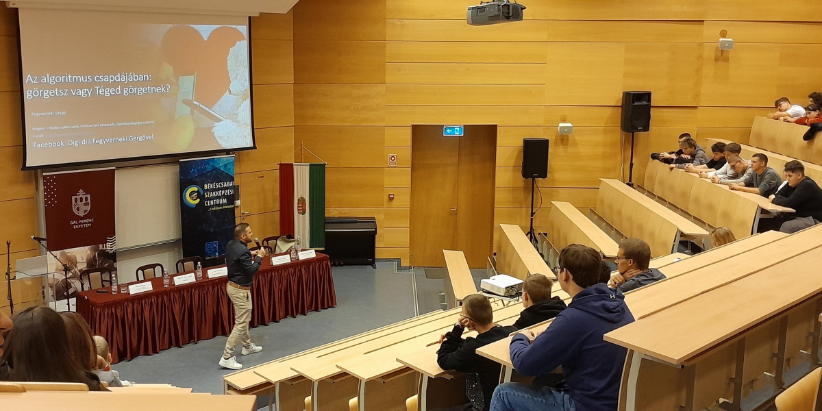 A tudományos szekcióban Fegyverneki Gergő digitálispedagógiai szakértő tartott rendkívül tanulságos előadást. Beszélt arról, hogy miként befolyásolják mindennapi életünket az algoritmusok, és hogyan érdemes tudatosan használni a digitális eszközeinket. Az előadás elgondolkodtató, mégis szórakoztató volt, és sok gyakorlati példát is tartalmazott.