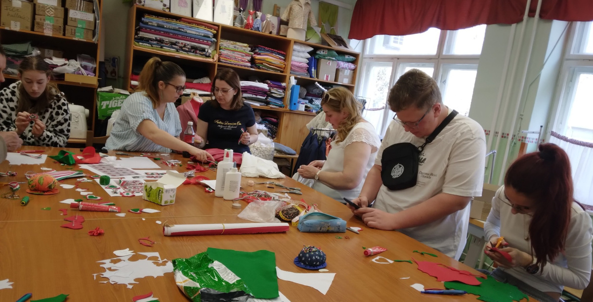 Március 13-án a DÖK nap keretein belül kreatív foglalkozásra hívtuk az érdeklődő diákokat és kollégákat a divatszabó szaktanterembe. Nemzeti ünnepünkre hangolódva, hagyományos kokárdákat és egyedi tervezésű nemzeti színű kitűzőket készítettünk, közben beszélgettünk a kokárda, mint nemzeti jelképünk megszületésének történelméről.
