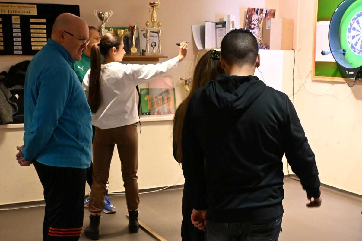 A második program a Csabagyöngye Kulturális Központ Hungarikum termében létrehozott KRENFI kerékpár kiállítás megtekintésével kezdődött, majd a Békéscsabai Darts Sportegyesület jóvoltából kipróbálhatták tanulóink ezt az egyre népszerűbb sportot, és egyúttal a matematikai alapműveleteket is gyakorolhatták.