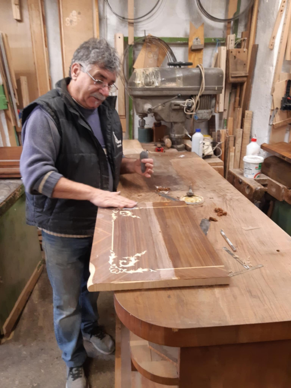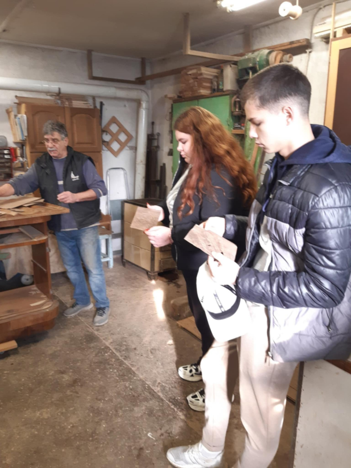 A második napon Schwertner Béla tanár úr vendégszeretetét élvezhettük. Meglátogattuk a saját műhelyében, ahol ízelítőt kaptunk a bútorrestaurálás titkos fortélyaiból. A furnérozás, a politúr javítás fogásait tekinthettük meg, majd közkívánatra egy esztergálás bemutatót is tartott nekünk. Mindezt elméleti és gyakorlati ismeretekkel tarkítva. Köszönjük, hogy ott lehettünk!