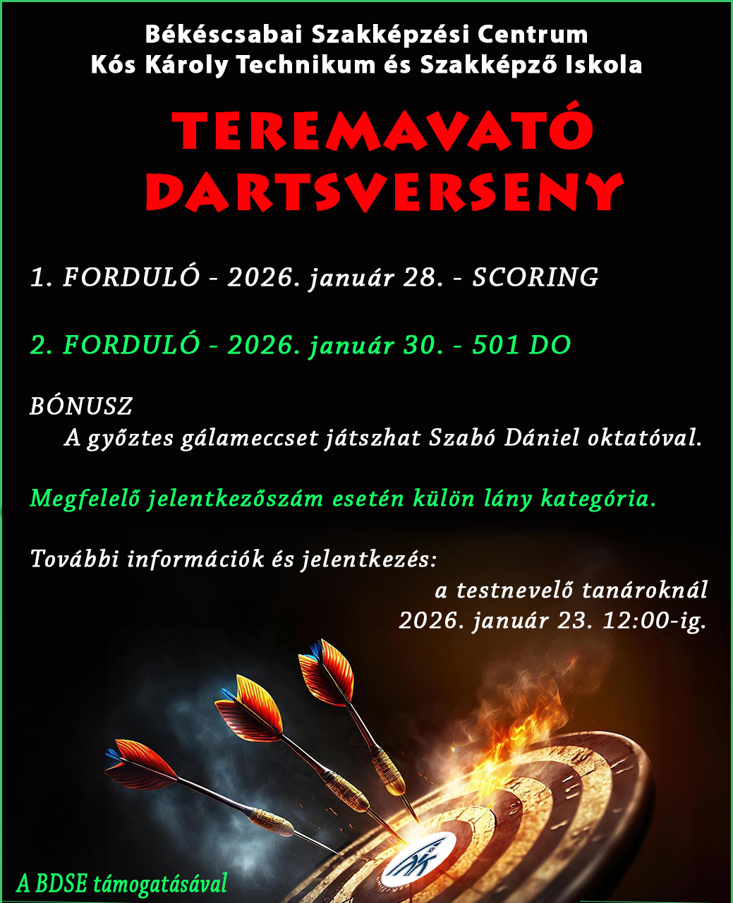 Iskolánk kétfordulós teremavató dartsversenyt rendez tanulói számára.